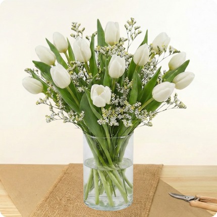 Bouquet Tulipes Blanches – La pureté florale entre les mains du fleuriste