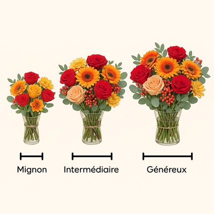 Exprimez la puissance de la couleur et de la lumière avec le Bouquet Fauve, une création inspirée du mouvement pictural du même nom, où les teintes chaudes et intenses prenaient le pas sur le réalisme. Cette composition florale associe harmonieusement des fleurs orange flamboyant, des rouges profonds et des tons pêche tout en douceur. Un bouquet généreux et structuré, idéal pour illuminer une pièce ou faire rayonner un message d’émotion et de vitalité.