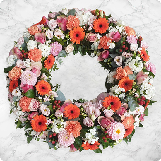 Couronne fleurie pour deuil avec fleurs colorées